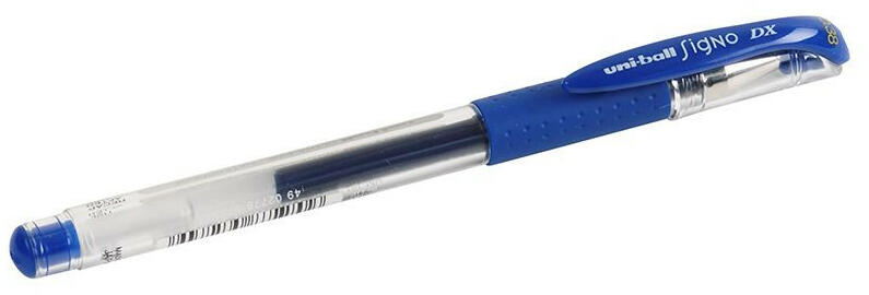 Rozsdamentes acél hegyű, átlátszó testű, nagy betétes, a tinta színével megegyező klipszű zselés toll. Jellegzetesen lágy, fényes írásmóddal, víz és UV-álló tintával, nagy színválasztékban. Írásvastagság: 0,3 mm. Betét: UMR-5. Katalóguskód: 1522
