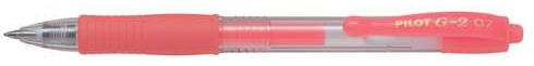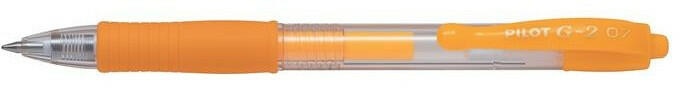 Zseléstoll, 0,37 mm, nyomógombos, PILOT "G-2 Neon", narancs az igazán puha írás és telt színek kedvelőinek - neon árnyalatú színek - Európa több országban ez a legjobban eladott zseléstoll - ellenálló anyagú (wolfram-karbid) hegy - gumírozott markolat - cserélhető betét - látható tintaszint, nyomógombos - vonalvastagság: 0,37 mm