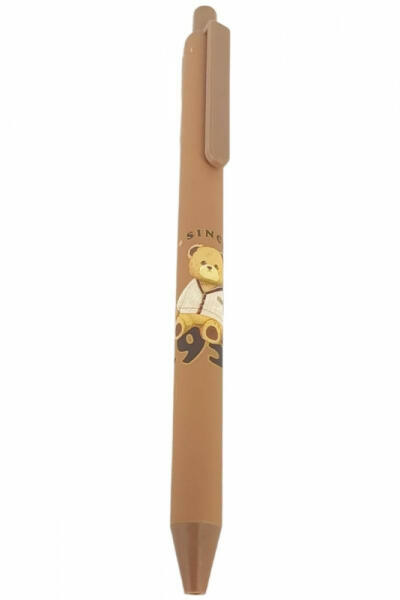 Zseléstoll 1950 maci - világosbarna Zseléstoll 1950 maci - világosbarna. Egy aranyos Teddy Maci, Mr. Nandy figurája lett rányomva a világosbarna zselés toll oldalára. A nyomógombos toll kék színnel ír, vonalvastagsága 0,5 cm, és a benne lévő betét cserélhető. Van rajta egy műanyag klipsz, amivel rátűzhetjük füzetünk szélére vagy ruhánk zsebére. Zseléstoll 1950 maci -