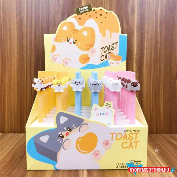 Mosolygós Toast Cicák Zseléstoll 0,5 mm – Cuki és különleges írásélmény macskabarátoknak Ismerkedjen meg a Mosolygós Toast Cicák zseléstollal, amely egyszerre aranyos és szórakoztató írószer minden macskakedvelő számára! Ez a zseléstoll a különleges, mosolygós „toast cicák mintával minden írást kedvesebbé és egyedibbé tesz. A cuki cicás dizájn nemcsak praktik