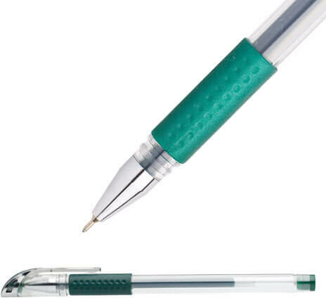 Zölden író kupakos zselés toll átlátszó tolltesttel. Fogórésze gumírozott. Vonalvastagság: 0,5 mm. Íráshossz 1500 m.