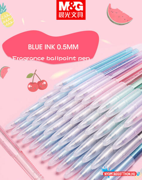 Kéken és illatosan fogó, kupakos golyós toll. A toll test színes, pasztell színű. Vastagság: 0,5 mm. Az ár egy darabra értendő. A szín nem választható, véletlenszerűen kerülnek kiküldésre.