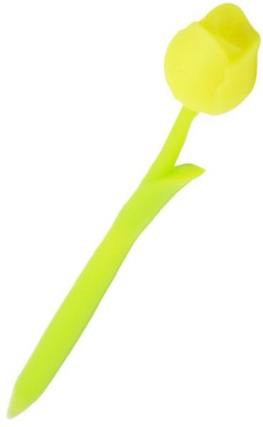 Kellemes tavaszi hangulatú zselés toll tetején billegő sárga tulipánnal. A toll sárga tulipán dísze szilikon anyagú, úgy néz ki mint egy igazi virág, nagyon cuki.
