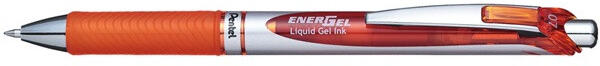 Pentel EnerGel BL77-FX 0,7mm narancs zselés rollertoll Nyomógombos zseléstoll, exkluzív, fém hatású tolltest, fém klipsszel, rovátkolt fogózóna a kényelmes, csúszásmentes használatért. 0,7 mm hegyátmérő = 0,35 mm írásvastagság, tintaablakkal a kellemetlen meglepetések elkerülésére. Ultragyorsan száradó EnerGel tinta, 12 féle színben. Cserélhető betét (LR7).