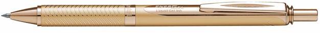 Nyomógombos zseléstoll-exkluzív, fém hatású tolltest-fém klip-rovátkolt fogózóna a kényelmes, csúszásmentes használatért-golyóátmérő: 0,7 mm-írásvastagság: 0,35 mm-kémlelőnyílás -ultragyorsan száradó EnerGel tinta-kék cserélhető betét cikkszáma: PENLR7K-54 %-ban újrahasznosított-és újrahasznosítható anyagokból készült