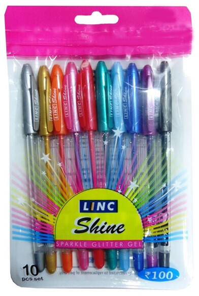 Linc Shine Glitter 10db-os vegyes színű zseléstoll - Csillámos zseléstoll készlet - Tinta színével megegyező kupak - Kiszerlés: 10 db/csomag