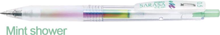 A tolltervezés világában kiemelkedő teljesítmény nyújt, , a Sarasa Clipben minden megvan Ez a toll három tinta szín keverékét tartalmazza, amelyek írás közben véletlenszerű kombinációban jelennek meg. Az átlátszó test pompás látványt nyújt a belsejében lévő színörvényre, amely kiválóan alkalmas arra, hogy egyedi, színes megjelenést hozzon létre jegyzeteiben, raj