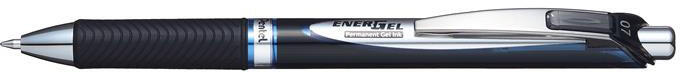 Nyomógombos zseléstoll -exkluzív, fém hatású tolltest -fém klip -rovátkolt fogózóna a kényelmes, csúszásmentes használatért -golyóátmérõ: 0,7 mm -írásvastagság: 0,35 mm -kémlelõnyílás -ultragyorsan száradó EnerGel tinta -kék cserélhetõ betét cikkszáma: PENLR7K -54 %-ban újrahasznosított-és újrahasznosítható anyagokból készültCsomagolási egység: 1 db Alcs