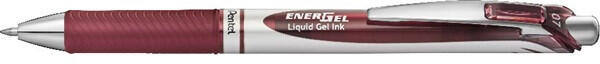 Pentel EnerGel BL77-BGX 0,7mm burgundi zselés rollertoll Nyomógombos zseléstoll, exkluzív, fém hatású tolltest, fém klipsszel, rovátkolt fogózóna a kényelmes, csúszásmentes használatért. 0,7 mm hegyátmérő = 0,35 mm írásvastagság, tintaablakkal a kellemetlen meglepetések elkerülésére. Ultragyorsan száradó EnerGel tinta, 12 féle színben. Cserélhető betét (LR7).