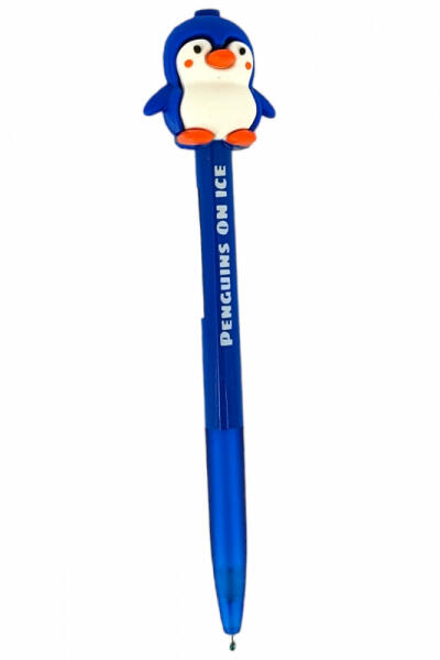 Zselés toll sötétkék pingvin Zselés toll sötétkék pingvin . Kisiskolások számára is tökéletes választás ez a zselés toll, amit imádni fognak használni. A sötétkék alapszínű toll tetején egy nagyon aranyos pingvin ücsörög, ami biztos fog tetszeni nekik. A toll oldalán Penguins in Ice (Pingvinek a jégen) felirat látható. A nyomógombos zselés toll kék színnel ír é