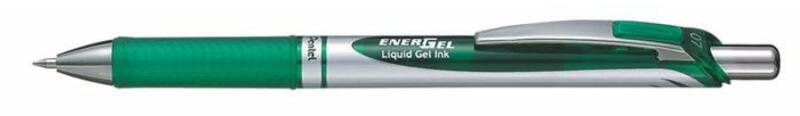 Nyomógombos zseléstoll -exkluzív, fém hatású tolltest -fém klip -rovátkolt fogózóna a kényelmes, csúszásmentes használatért -golyóátmérő: 0,7 mm -írásvastagság: 0,35 mm -kémlelőnyílás -ultragyorsan száradó EnerGel tinta -kék cserélhető betét cikkszáma: PENLR7K -54 %-ban újrahasznosított-és újrahasznosítható anyagokból készült