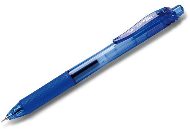 Zseléstoll, 0,25 mm, nyomógombos, PENTEL "EnerGelX BLN105", kék Nyomógombos, tűhegyű zselés rolleriron. -gyorsan száradó tinta -ajánlott balkezesek számára -elasztikus klip -84 %-ban újrahasznosított, PVC mentes anyagból készült -gumírozott fogózóna -cserélhető betét cikkszáma: PENLR7KAlcsoportcserélhető betétesVonalvastagság0.25 mmSzerkezetnyomógombosTinta színekék