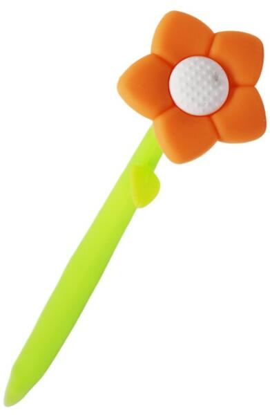 Kellemes tavaszi-nyári hangulatú zselés toll tetején billegő narancssárga virággal. A toll narancssárga dísze szilikon anyagú, úgy néz ki mint egy igazi virág, nagyon cuki.