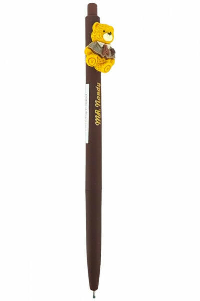 Zselés toll 1950 maci 0,5 mm - sötétbarna Zselés toll 1950 maci 0,5 mm - sötétbarna. Te is szereted a macikat? Akkor ez a toll nagyszerű választás számodra, hiszen Mr. Nandy - egy aranyos Teddy Maci - figurája van rajta. A zselés toll alapszíne sötétbarna, és arany színnel Mr. Nandy neve szerepel még rajta. A nyomógombos toll kék színnel ír és a benne lévő betét cserélhe