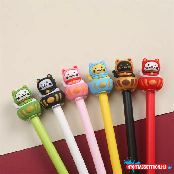 Egy nem mindennapi szerencsét hozó cicás zselés toll. Csomag tartalma: - 1 db zselés toll - írásszín: fekete - vastagság: vékony, 0.5mm - súly: 22g - hossz: 15,5cm Az ár egy darabra érvényes.