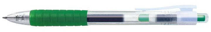 Rozsdamentes acél hegyű, átlátszó műanyag testű zsellés toll. Kupakos kivitel, gumi ujjpárnával felszerelt test. A tinta színével megegyező minta a tolltesten. Nagy festéktartály, markáns vonalvezetés. Okmány- és aláírásbiztos (nem lehet kiszedni a papirból). Vonalvastagság: 0,6 mm, golyóátmérő: 1 mm.