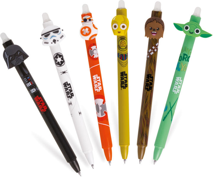 Colorino radírozható zseléstoll nyomógombos Star WarsPraktikus radírozható tollak kedves, vidám, Star Wars motívumokkal, élénk színekkel. A kiváló minőségű tinta a toll végével egyszerűen és könnyen kiradírozható. 6 különböző motívum A feltüntetett ár 1 db-ra vonatkozik, a kép illusztráció! Megrendelés esetén kérjük, a megjegyzés rovatban tüntesse fel, hogy m
