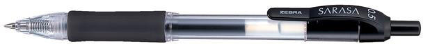 Zseléstoll, 0,33 mm, nyomógombos, ZEBRA "Sarasa", fekete Nyomógombos zseléstoll, melynek áttetsző teste lehetővé teszi a tinta fogyásának nyomon követését. -gumírozott markolat, melynek színe megegyezik a tinta színével -írásvastagság: 0,33 mm -gyorsan száradó tinta -rugós, csipeszes klip -írását nehéz elkenni, így balkezeseknek is ideális -színezésre is kiválóan a