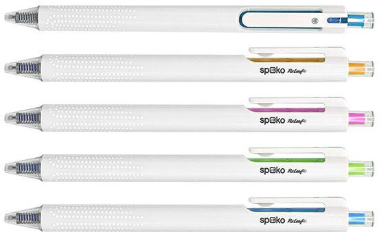Zseléstoll SPOKO 0123 ReLeaf Flow vegyes színekben Zselés toll nagy kapacitású tollbetéttel, egyedülállóan vékony „ST heggyel és extra halk, „Silent click kapcsoló mechanikával. Az új „ST hegy egyesíti a klasszikus golyóstoll és a tűhegy tulajdonságait, így az írás könnyű, sima, az íráskép pedig tiszta és állandó még gyors írás esetén is. Csúszásmentes mar