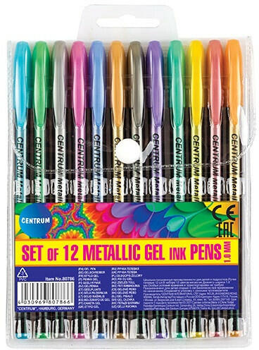 Zselés toll Centrum Metallic 1,0 mm 12 db-os klt. újratölthető Zselés toll készlet csillogó tintával Fehér és fekete papírra is könnyen és kényelmesen ír