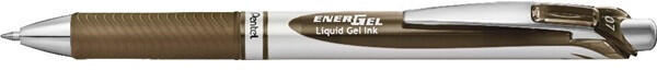 Pentel EnerGel BL77-SPX 0,7mm szépia zselés rollertoll Nyomógombos zseléstoll, exkluzív, fém hatású tolltest, fém klipsszel, rovátkolt fogózóna a kényelmes, csúszásmentes használatért. 0,7 mm hegyátmérő = 0,35 mm írásvastagság, tintaablakkal a kellemetlen meglepetések elkerülésére. Ultragyorsan száradó EnerGel tinta, 12 féle színben. Cserélhető betét (LR7).