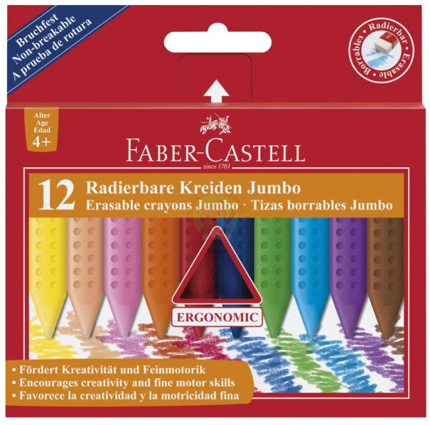 Rendkívül élénk színek, melyek ösztönzik a kreativítást. Az ergonomikus vastag-háromszögforma optimális a helyes ceruzafogás elsajátításához, az ujjak kevésbé fáradnak el. Fejleszti a finommotorikát. A zsírkréták ceruzahegyezővel hegyezhetők, speciális alapanyaguknak és rugalmasságuknak köszönhetően ellenállóbbak a sérülésekkel szemben. Nem morzsolódik az anya