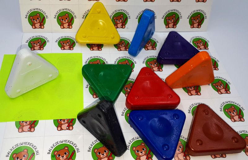 Háromszög alakú írásfejlesztő zsírkréta kb 4,5 cm-es lapos háromszög forma. Oldalán bemélyedés található, a kényelmes-ergonóm fogásért. Jobb-és balkezeseknek egyaránt alkalmas. Segíti a későbbi helyes ceruzafogás kialakulását. Az intenzív színekkel a színezés örömteli akár az óvodában, akár az iskolában vagy hobbiból. Sötét vagy színes papíron is élénk,