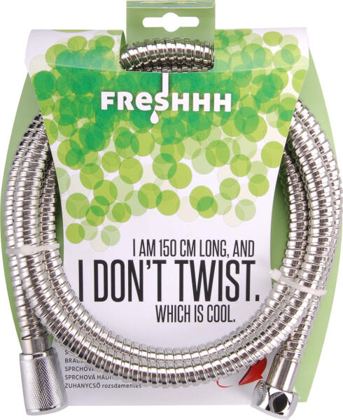 Ravak 913.00CR műanyag zuhany gégecső 150 cm, króm X07P176 Tulajdonságok Garancia: 2 év Hossz: 150 cm Súly: 0,3624 kg Kartus átmérő: 25 mm Kartus anyag: kerámia Anyag: tartós műanyag bevonattal Elegáns SatinFlex felülettel Egységes ezüstözött felület mattított szatén színváltozatban EasyTwist funkció: ehetővé teszi a zuhanyfej szabad forgását, ezzel meggátolja a gége