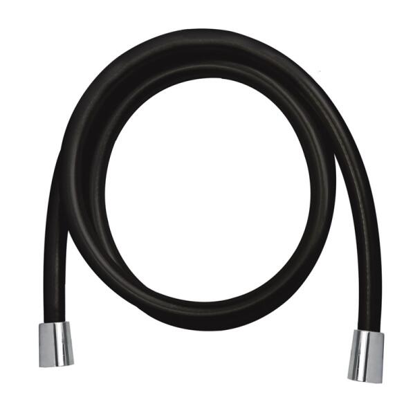 Termék részletekZuhanycső fekete, matt 150 cm hosszú. A tömlő a csaptelep és a zuhanyfej közé van szerelve. A műanyag burkolat megakadályozza a fürdőkád megkarcolódását. - Elcsavarodásgátló: rendszer a tömlő elcsavarodása ellen - Modern design