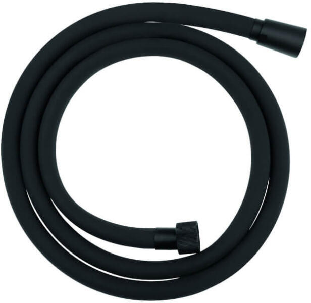 Laveo Pretto, szilikon zuhanycső 150 cm, fekete, LAV-CRP_74PD Szilikon zuhanycső Pretto. hossz: 1500 mm anyaga: EPDM gumi szilikon réteggel csavarodásgátló rendszerrel felszerelt fertőtlenítő könnyen tisztán tartható, rugalmas krómozott sárgaréz sapkák szín: matt fekete