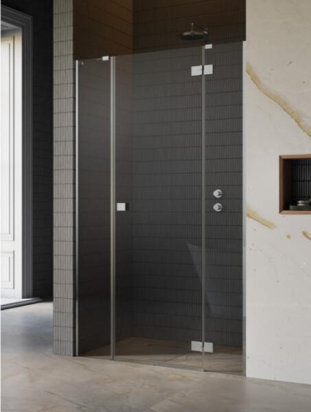 Kifelé nyíló zuhanyajtó két oldalt fix résszel. |Méret: 110 cm|Magasság: 200 cm|Profil színe: króm|Üveg: átlátszó|Jobbos kivitel|6 mm vastag, Easy Clean vízlepergető bevonattal ellátott edzett üveggel gyártjuk, mely elsőrendű megoldás a vízkőfoltok ellen, valamint a lerakódások megakadályozására. |Elegáns, praktikus króm fogantyú. |Minimalista, letisztult króm elem