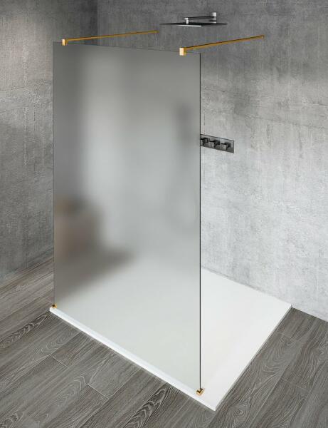 Magasság: 2000 mm|Szélesség: 700 mm|Forma: Egy oldalú|Üveg típusa: matt üveg|Üvegvastagság: 8 mm|Profil színe: Aranymatt|Walk-in merevítő: 1400 mm