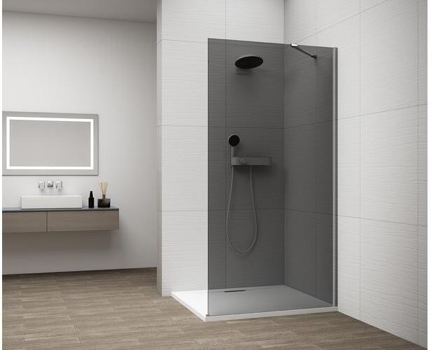 Tegye szebbé fürdőszobáját ezzel a modern, ESG üveges, küszöb nélküli zuhanyhoz használható zuhanyfallal! Prémium minőségű anyag: A zuhanyfal 5 mm vastag biztonsági ESG üveggel és alumínium kerettel rendelkezik. Így biztos lehet benne, hogy a szerkezet beszerelés után erős lesz. Állítható méret: Az állítható profilnak és a rugalmas tartórúdnak köszönhetően bár