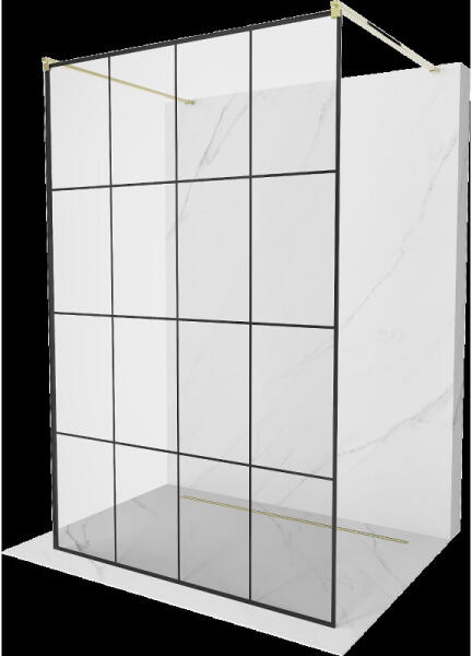 Mexen KIOTO zuhanyparaván WALK-IN 8mm, 110x200 cm, átlátszó üveg / arany profil, 800-110-101-50-00 A zuhanykabin univerzális és népszerű megoldás minden fürdőszobába. A paravánnak nincs ajtaja, és egy távtartót tartalmaz, amely a kívánt hosszúságra (max. 150 cm) rövidíthető. A Kioto sorozat 8 mm-es edzett biztonsági üvegből készül, melynek magassága 200 cm, a fém r