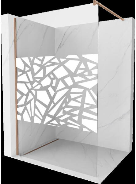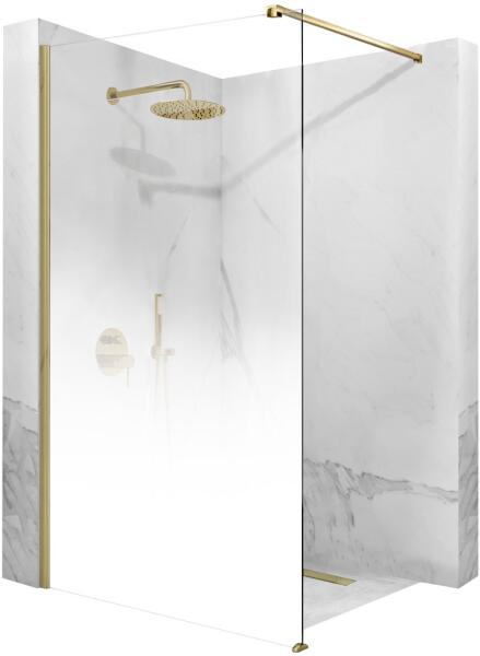 Rea Aero Ombre, Walk-In zuhany paraván 120x195 cm, 8mm átlátszó üveg fehér mintával, arany matt profil, REA-K2466 Gyártó: Rea Fal típusa: Walk-in Üveg színe: Átlátszó - átlátszó, fehér mintás Kar: mennyezet / fal Üvegtípus: Biztonsági edzett üveg Profil felület: csiszolt arany Üvegvastagság: 8 mm Profil anyaga: alumínium Üvegbevonat: Igen, könnyen tisztítható