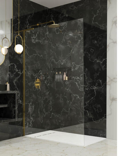 Panoráma a fürdőszobára. Zuhanykabin minimalista stílussal. Szinte észre sem veszi, és tágasabbá teszi a fürdőszobát. 8 mm vastag Easy Clean vízlepergető bevonattal ellátott edzett üvegből gyártjuk, mely elsőrendű megoldás vízkőfoltok, lerakódások megakadályozására. Az állítható takaróprofil lehetővé teszi a fal függőleges eltéréseinek kiigazítását. Zuhanyt