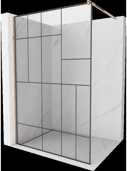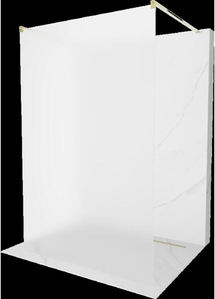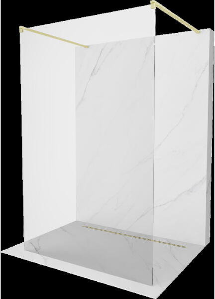 Mexen Kioto +, zuhany paraván polccal és törölközőtartóval 90 x 200 cm, 8mm szürke üveg, arany profil, 800-090-121-50-40 A zuhanykabin univerzális és népszerű megoldás minden fürdőszobába. A paraván ajtó nélküli, és egy rudat tartalmaz, amellyel a függöny felakasztható. A Kioto sorozat képernyője 8 mm-es edzett biztonsági üvegből készül, 200 cm magas. A felszerelés