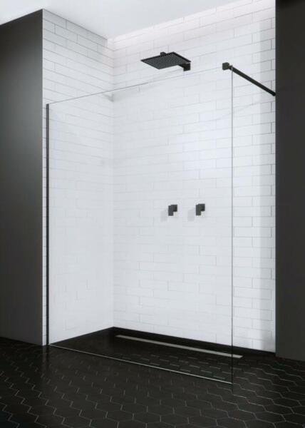 Radaway Modo New Black II 90 Walk-in zuhanyfal 389094-54-01 Önállóan beépíthető! Fali profillal a falra szerelhető pengefal 8 mm-es Easy Clean edzett üvegből. Kellően szabad teret biztosít a zuhanyzáshoz. 8 mm vastag Easy Clean vízlepergető bevonattal ellátott edzett üvegből gyártjuk, mely elsőrendű megoldás vízkőfoltok, lerakódások megakadályozására. Méretek: 70; 80;