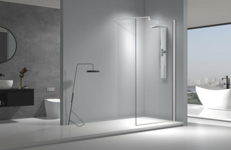 Panoráma a fürdőszobára. Zuhanykabin minimalista stílussal. Szinte észre sem veszi, és tágasabbá teszi a fürdőszobát. 8 mm vastag Easy Clean vízlepergető bevonattal ellátott edzett üvegből gyártjuk, mely elsőrendű megoldás vízkőfoltok, lerakódások megakadályozására. Az állítható takaróprofil lehetővé teszi a fal függőleges eltéréseinek kiigazítását. Zuhanyt