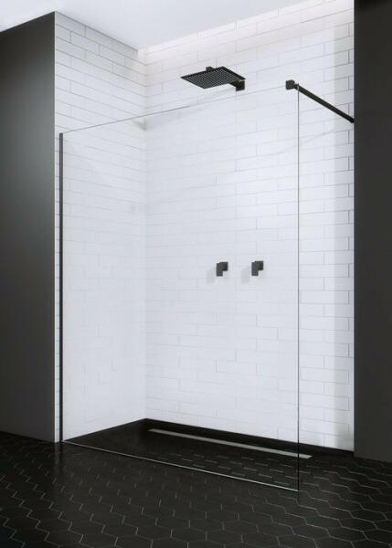 Kellően szabad teret biztosít a zuhanyzáshoz. 10 mm vastag Easy Clean vízlepergető bevonattal ellátott edzett üvegből gyártjuk, mely elsőrendű megoldás vízkőfoltok, lerakódások megakadályozására. Igény esetén, egyedi méretben is elkészítjük Önnek! A konstrukció stabilitását az elegáns fekete rögzítő elemek biztosítják. A távtartó rúd mozgatható feje lehetőv