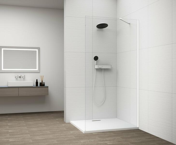 Walk-in zuhanyfal|Magasság: 210 cm|Mélység: 130 cm|Forma: fix oldalfal|Üveg típusa: transparent|Üvegbevonat: antidrop|Üveg vastagság: 8 mm|Profil színe: Fehér matt (az ár tartalmazza a fali profilt)|Az ár a merevítőt nem tartalmazza, külön szüskéges megvásárolni!|A kép illusztráció!