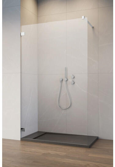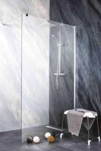 Walk-in zuhanyfal|Szélesség: 120 cm|Magasság: 210 cm|Üvegí típusa: matt üveg|Üvegbevonat: antidrop|Üveg vastagság: 8 mm|A kép illusztráció!|A fali profil, merevítő, sarokmerevítő nem tartozék!