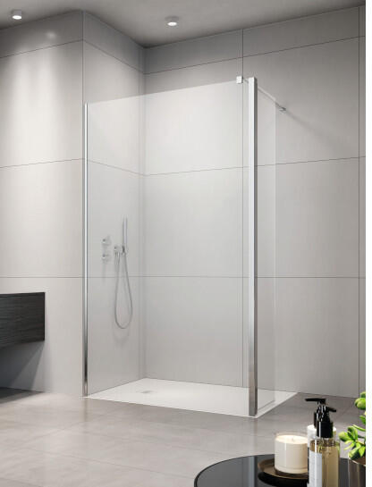 Panoráma a fürdőszobára. Zuhanykabin minimalista stílussal. Szinte észre sem veszi, és tágasabbá teszi a fürdőszobát. 8 mm vastag Easy Clean vízlepergető bevonattal ellátott edzett üvegből gyártjuk, mely elsőrendű megoldás vízkőfoltok, lerakódások megakadályozására. Az állítható takaróprofil lehetővé teszi a fal függőleges eltéréseinek kiigazítását. Szilár