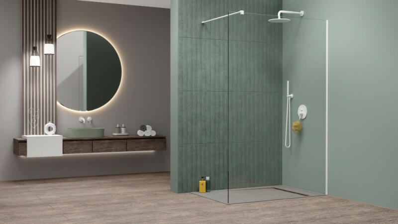 Panoráma a fürdőszobára. Zuhanykabin minimalista stílussal. Szinte észre sem veszi, és tágasabbá teszi a fürdőszobát. 8 mm vastag Easy Clean vízlepergető bevonattal ellátott edzett üvegből gyártjuk, mely elsőrendű megoldás vízkőfoltok, lerakódások megakadályozására. Az állítható takaróprofil lehetővé teszi a fal függőleges eltéréseinek kiigazítását. Szilár