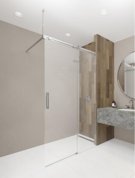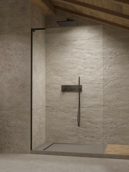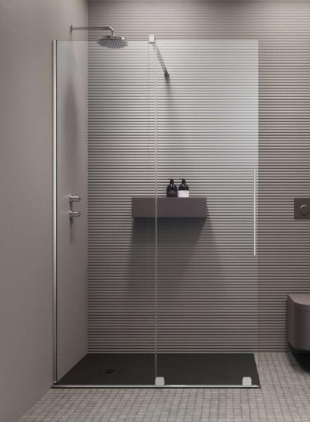 Panoráma a fürdőszobára. Zuhanykabin minimalista stílussal. Szinte észre sem veszi, és tágasabbá teszi a fürdőszobát. 8 mm vastag Easy Clean vízlepergető bevonattal ellátott edzett üvegből gyártjuk, mely elsőrendű megoldás vízkőfoltok, lerakódások megakadályozására. Az állítható takaróprofil lehetővé teszi a fal függőleges eltéréseinek kiigazítását. Zuhanyt