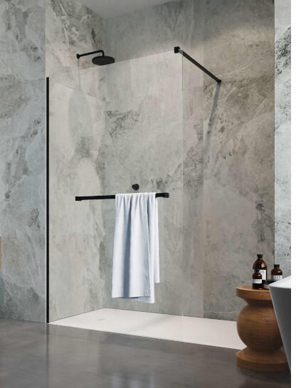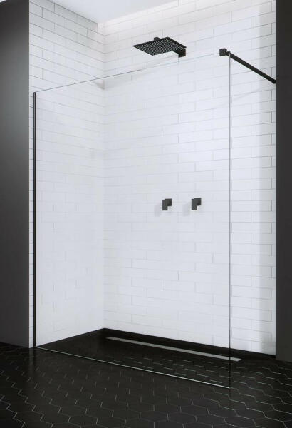 Kellően szabad teret biztosít a zuhanyzáshoz. 10 mm vastag Easy Clean vízlepergető bevonattal ellátott edzett üvegből gyártjuk, mely elsőrendű megoldás vízkőfoltok, lerakódások megakadályozására. Igény esetén, egyedi méretben is elkészítjük Önnek! A konstrukció stabilitását az elegáns fekete rögzítő elemek biztosítják. A távtartó rúd mozgatható feje lehetőv