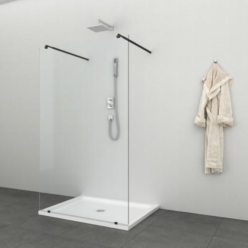 SANOTECHNIK FREEDOM I BLACK zuhanyfal Térben álló Walk-in zuhanyfal Magasság: 195 cm 8 mm-es biztonsági üveg vízlepergető bevonattal Átlátszó üveg Fekete padlórögzítő elemek Fekete teleszkópos távtartó (70-110 cm) Vízzáró szilikon tömítés Akadálymentes belépés Termék mérettípusai: Cikkszám: BW100 Méret: 97x195 cm Cikkszám: BW110 Méret: 107x195 cm Cikkszám: BW20