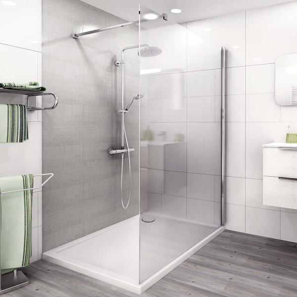 Panoráma a fürdőszobára. Zuhanykabin minimalista stílussal. Szinte észre sem veszi, és tágasabbá teszi a fürdőszobát. 8 mm vastag Easy Clean vízlepergető bevonattal ellátott edzett üvegből gyártjuk, mely elsőrendű megoldás vízkőfoltok, lerakódások megakadályozására. Az állítható takaróprofil lehetővé teszi a fal függőleges eltéréseinek kiigazítását. Zuhanyt