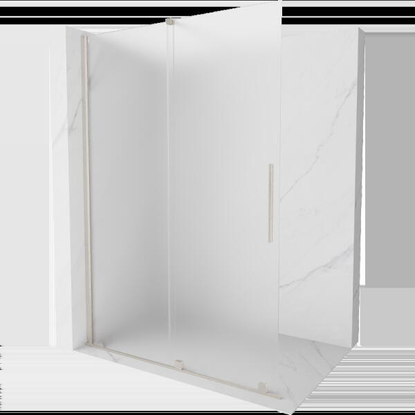 Szálcsiszolt króm kádparaván görgős ajtóval és egy fix résszel. |Méret: 130 cm|Magasság: 150 cm|Profil színe: szálcsiszolt króm|Üveg: átlátszó|Jobbos kivitel|8 mm vastag, Easy Clean vízlepergető bevonattal ellátott edzett üveggel gyártjuk, mely elsőrendű megoldás a vízkőfoltok ellen, valamint a lerakódások megakadályozására. |Felső stabilizáló elem, innovatív l