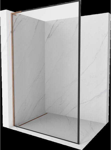 Mexen Kioto +, zuhanyparaván polccal és törölközőtartóval 70 x 200 cm, 8mm átlátszó üvegmintás fehér, rózsa arany profil, 800-070-121-60-97 A zuhanykabin univerzális és népszerű megoldás minden fürdőszobába. A paraván ajtó nélküli, és egy rudat tartalmaz, amellyel a függöny felakasztható. A Kioto sorozat képernyője 8 mm-es edzett biztonsági üvegből készül, 200